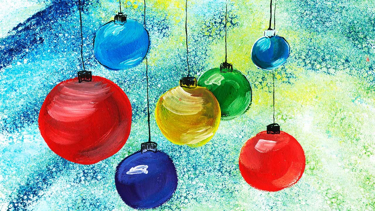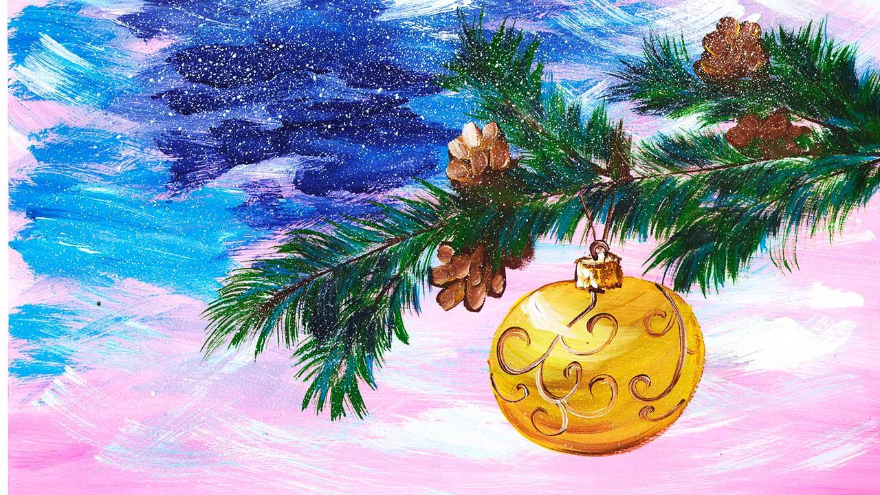 Рисование новогоднего шара красками