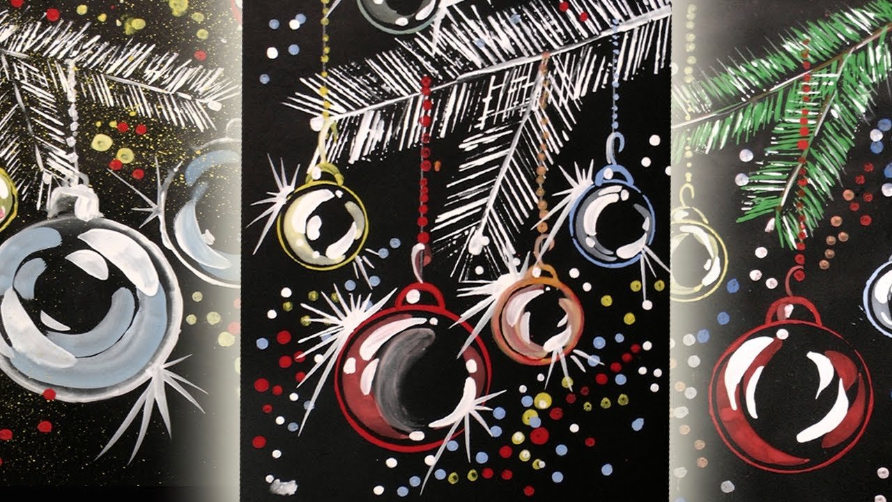 ![Рисование красками ёлочные шары]()