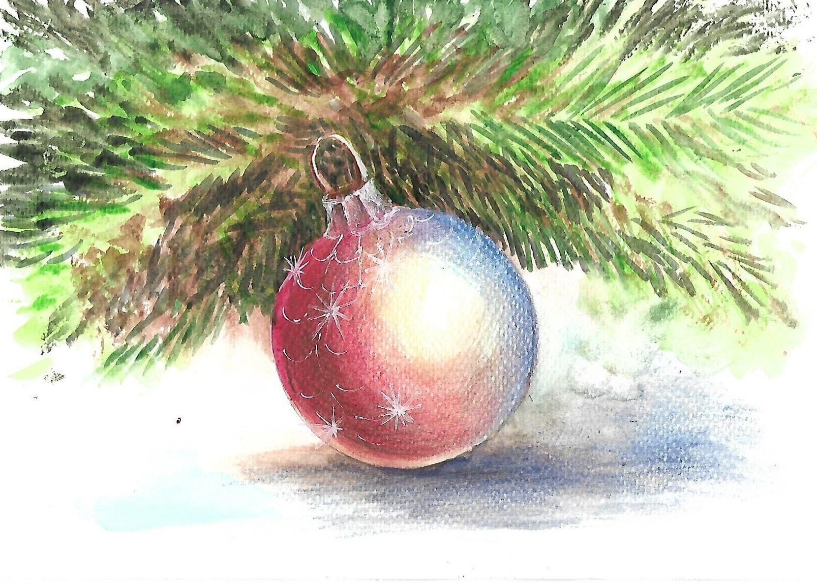 Елочный шар акварелью