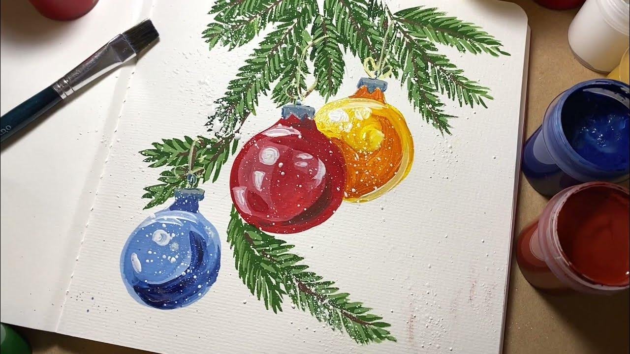 ![Елочные шары гуашью]()