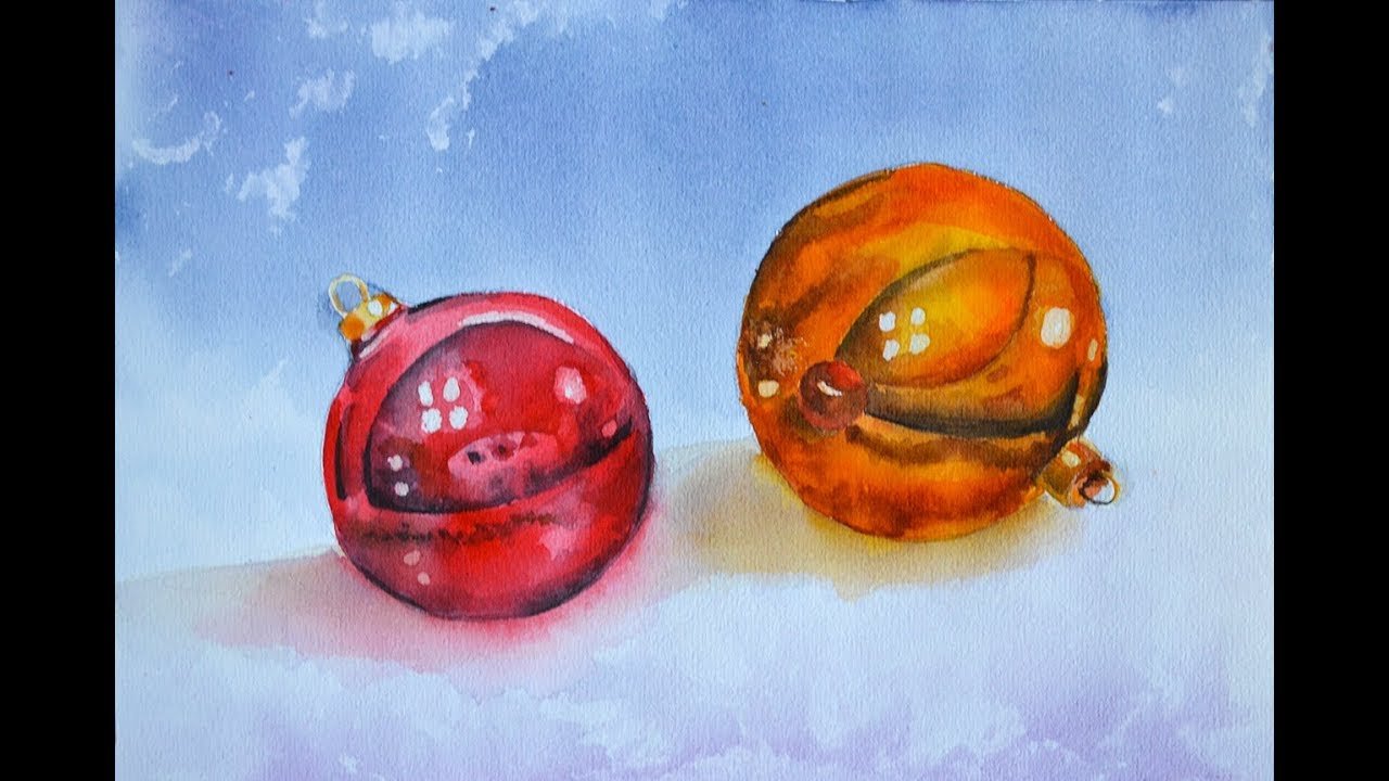 ![Елочный шар акварелью]()