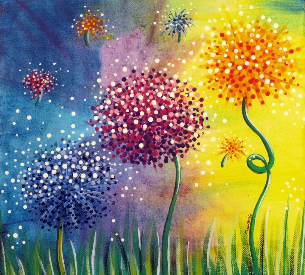 ![Правополушарное рисование гуашью одуванчики]()