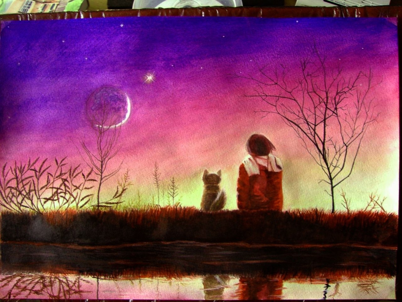 ![Ночное небо акварелью]()