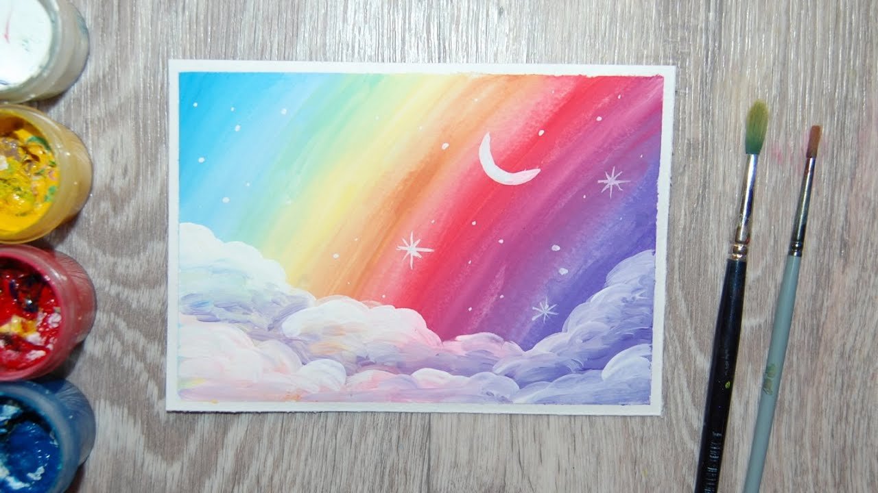 Как рисовать радугу гуашью