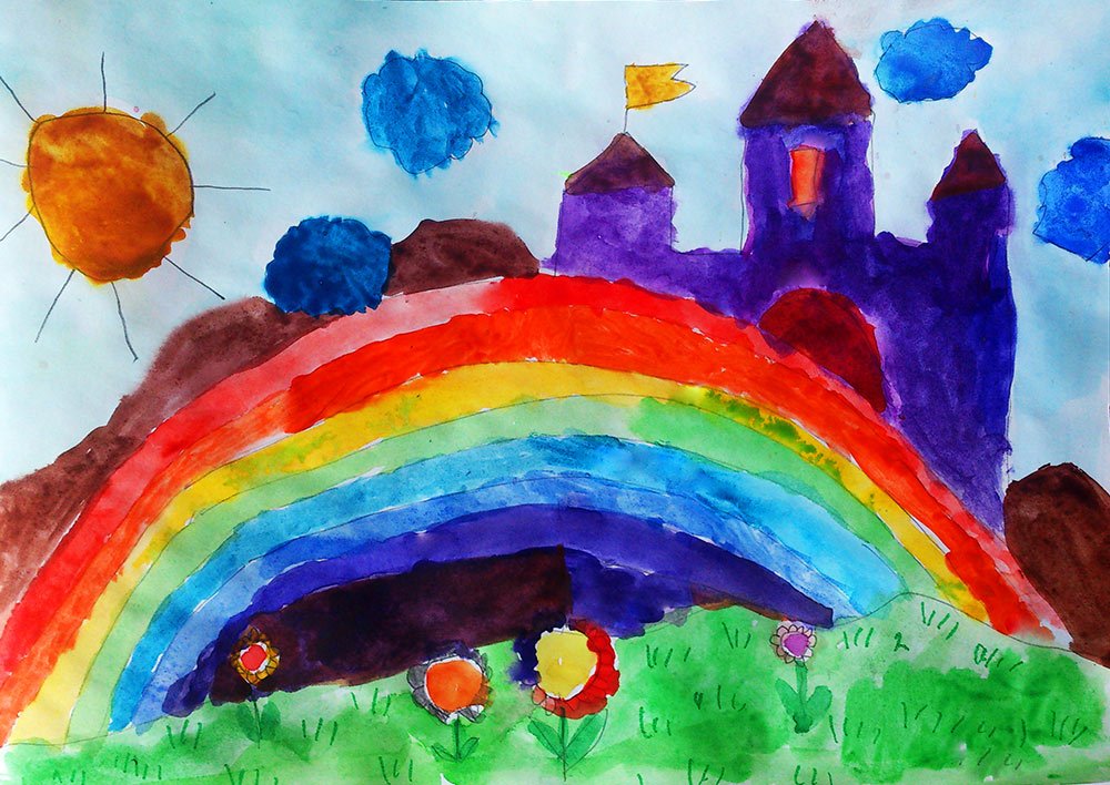 ![Детский пейзаж с радугой]()