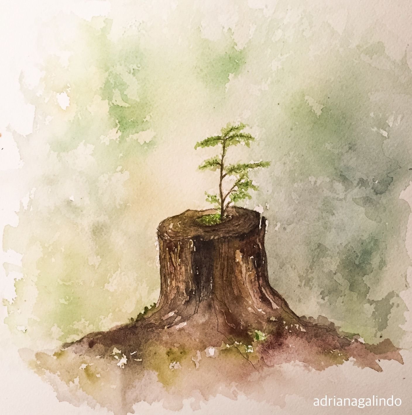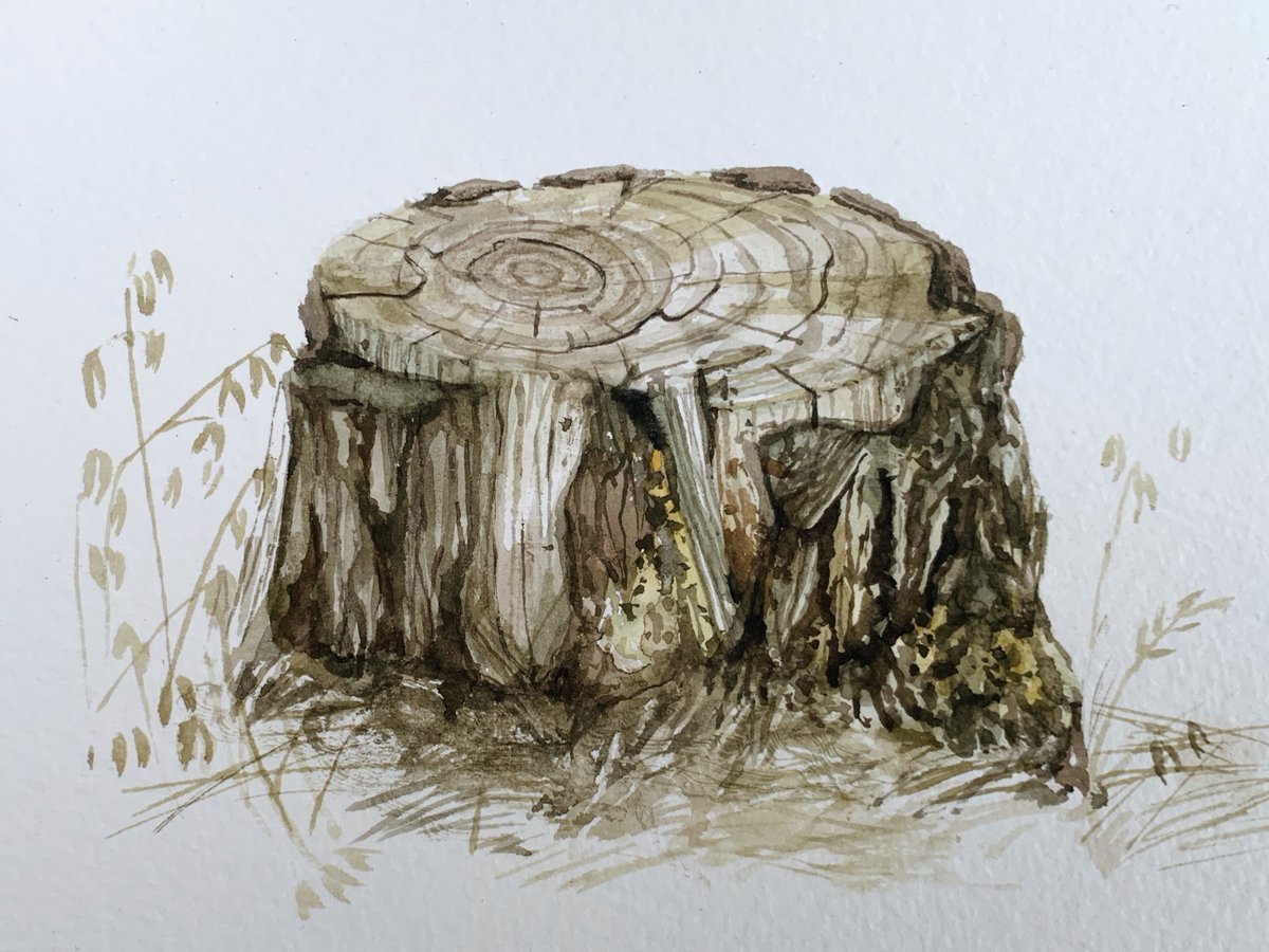Пень акварелью
