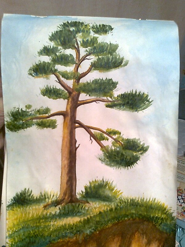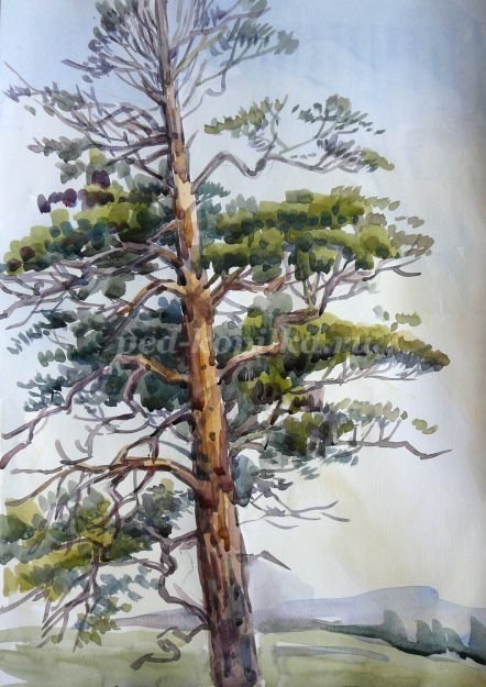 ![Одинокая сосна акварелью]()