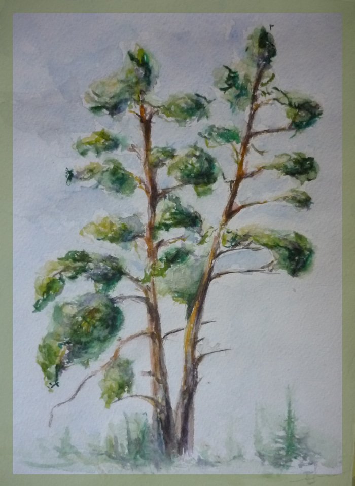 Сосна акварелью