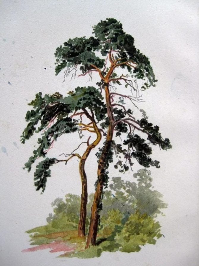 ![Сосна акварелью]()