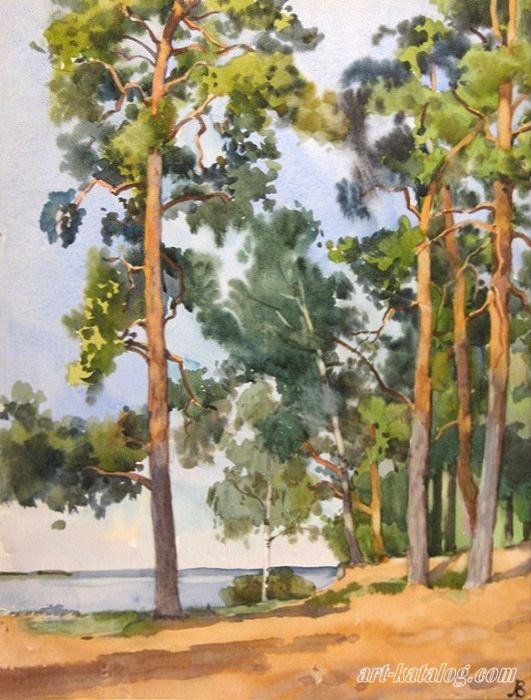 ![Кострамин акварель сосны]()