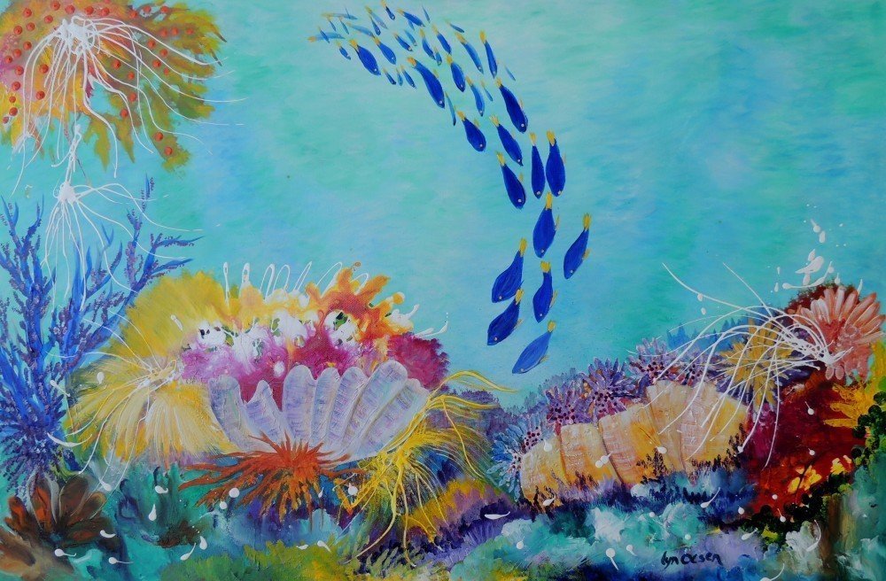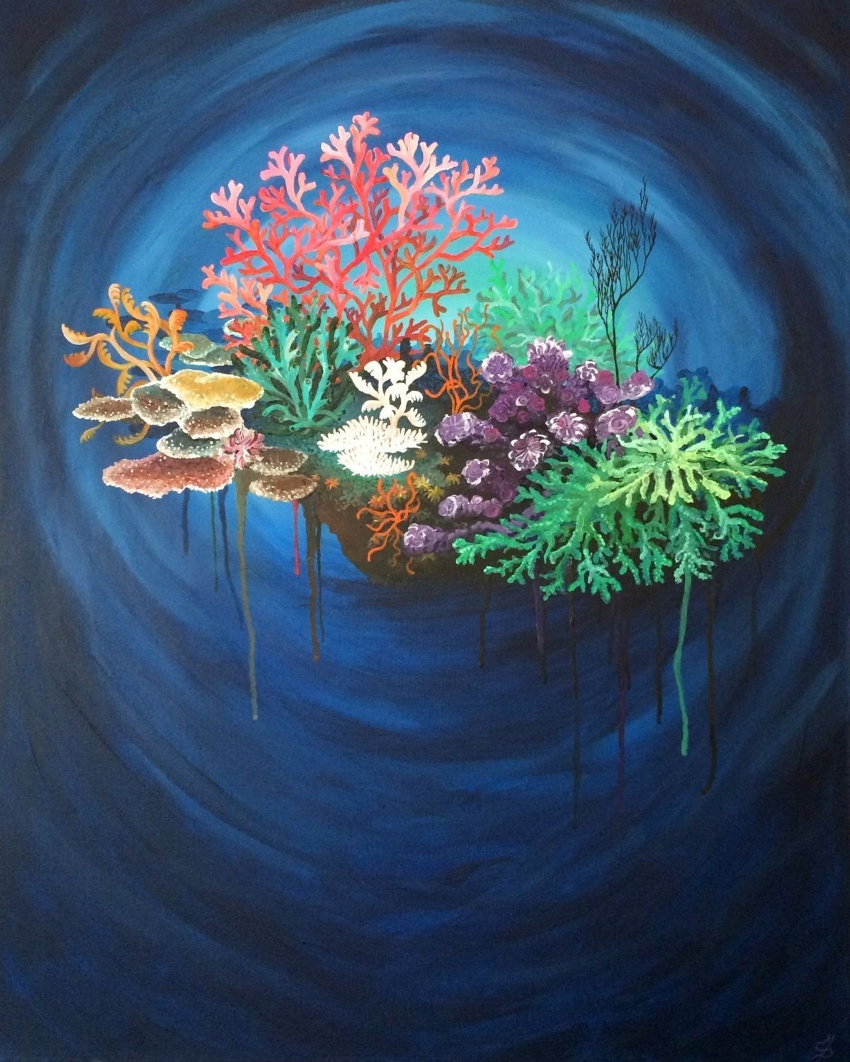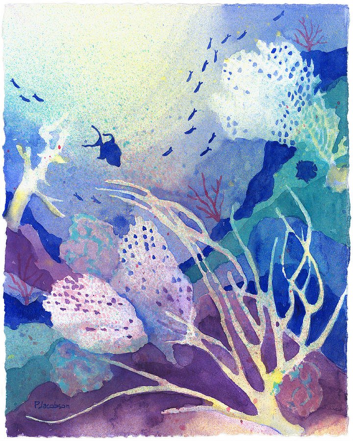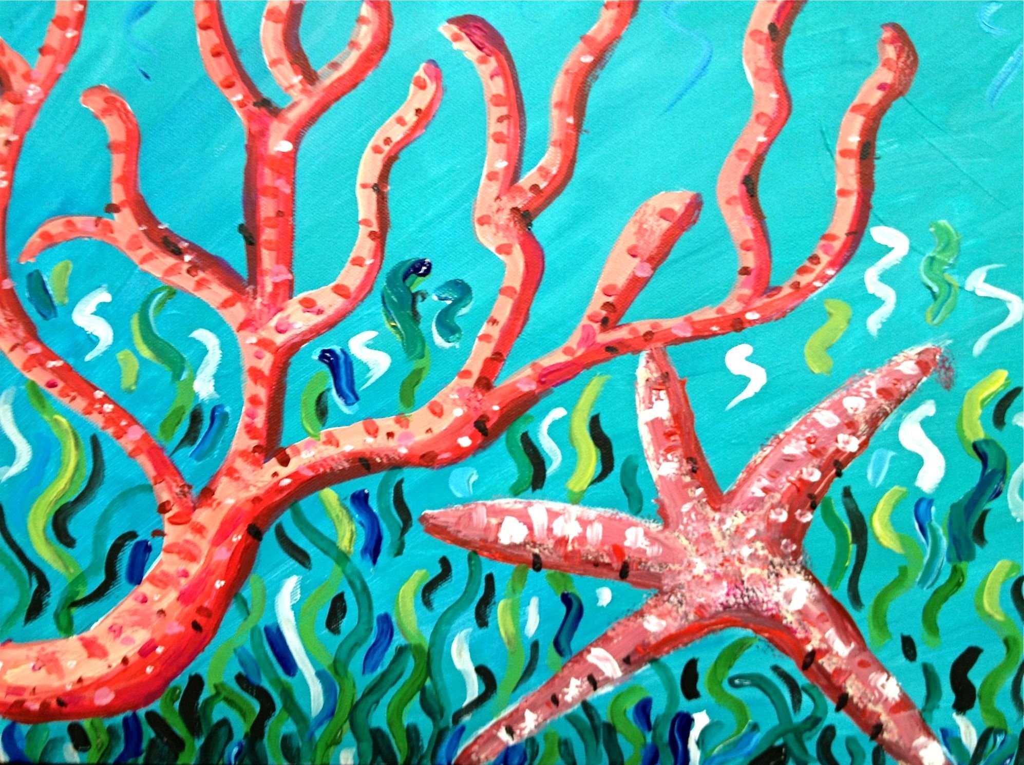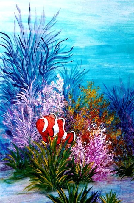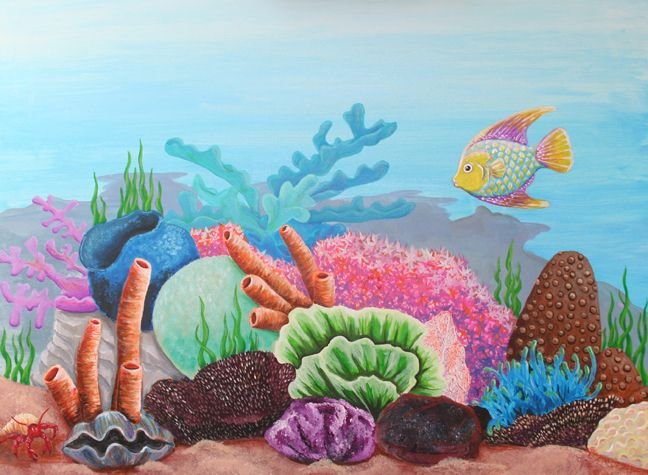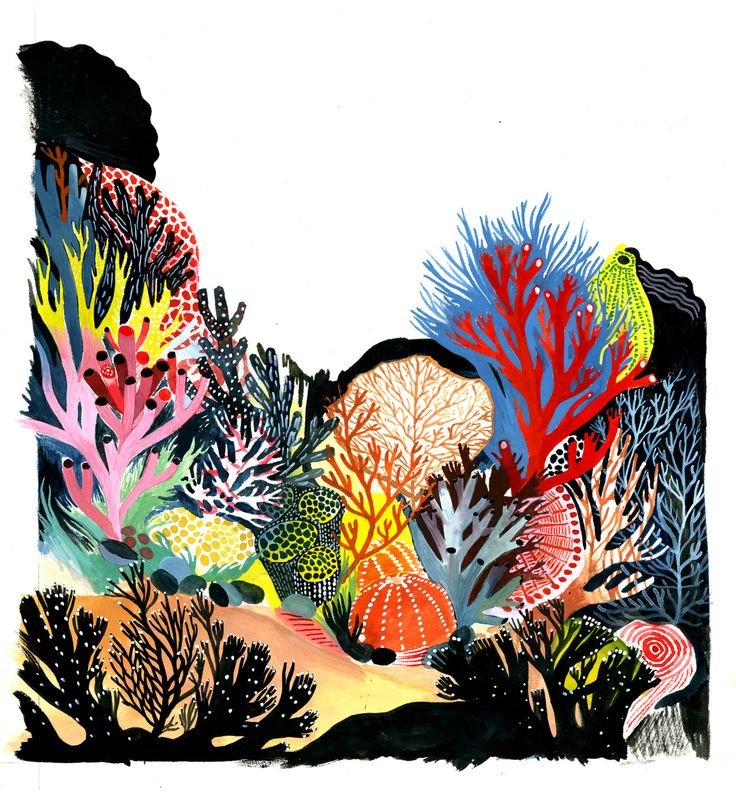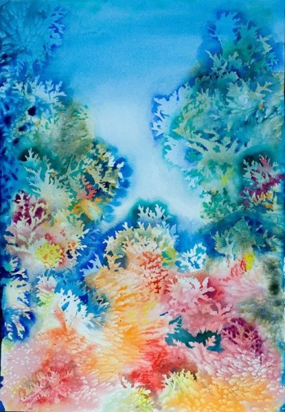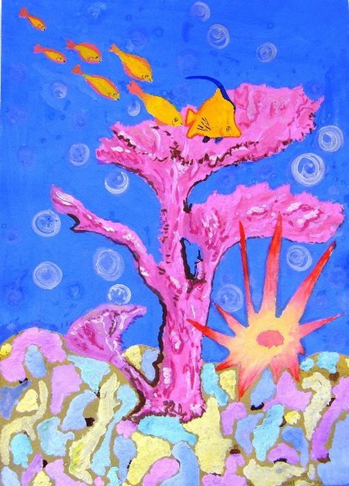 ![Светящиеся кораллы рисунок цветными карандашами]()