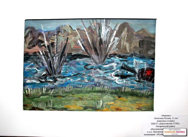 Погрузитесь в захватывающий мир рисунка, оживающего при помощи ярких красок гуаши. Взрыв визуальных эмоций и динамики заполняет холст, создавая уникальное впечатление и захватывая ваш взгляд. Яркие и насыщенные цвета гуаши передают все нюансы и оттенки этого мощного события, будто вы сами стали свидетелем взрыва. Каждая капля краски на холсте оживает и превращается в потрясающую картину, которая вызывает восхищение и изумление. Наслаждайтесь каждой деталью этого рисунка, который перенесет вас в мир ярких и эмоциональных впечатлений.