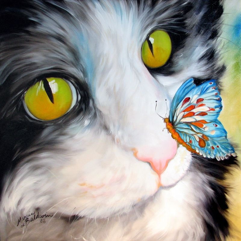 ![Художник Марсия Болдуин котенок с бабочкой]()