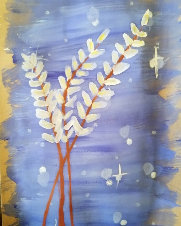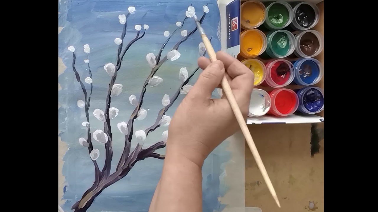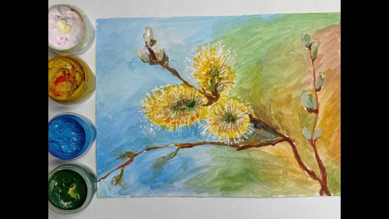 Рисование вербы красками