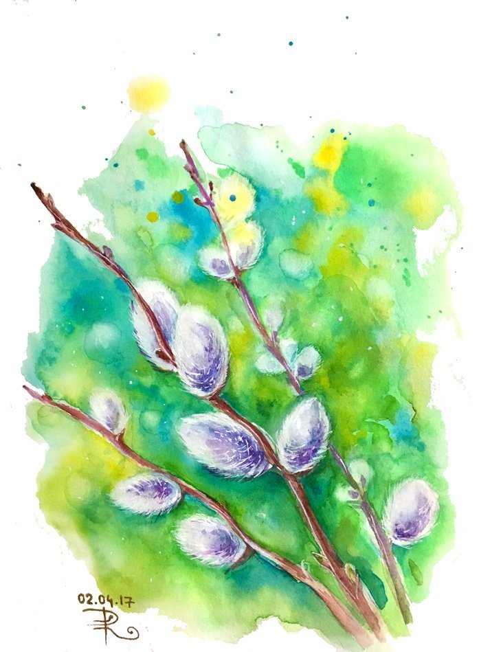 Рисование вербы акварелью