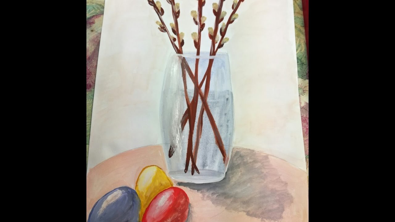 ![Верба в вазе гуашью]()