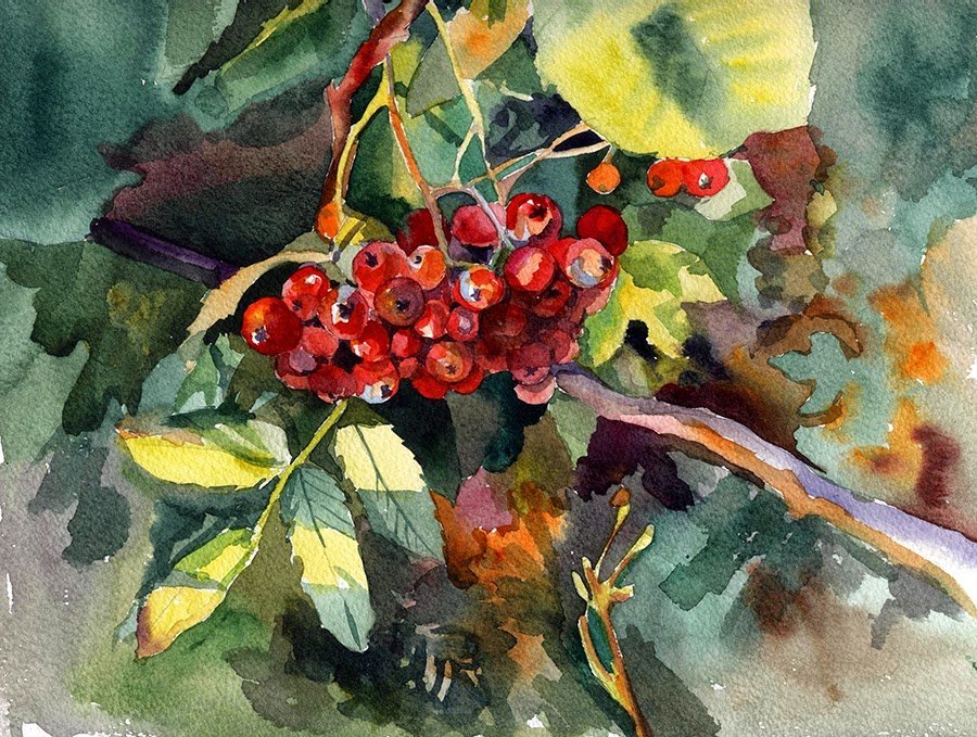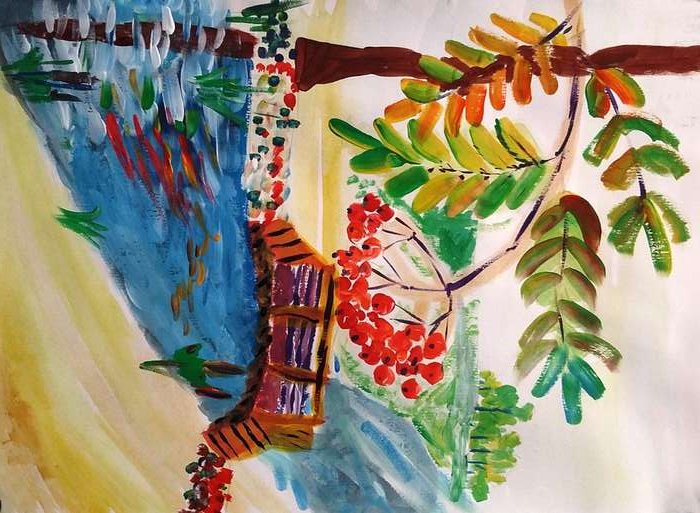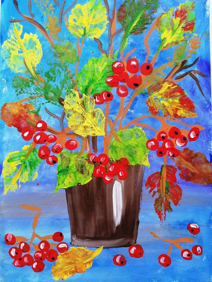 ![Рисование в подготовительной группе веточка рябины осенью]()