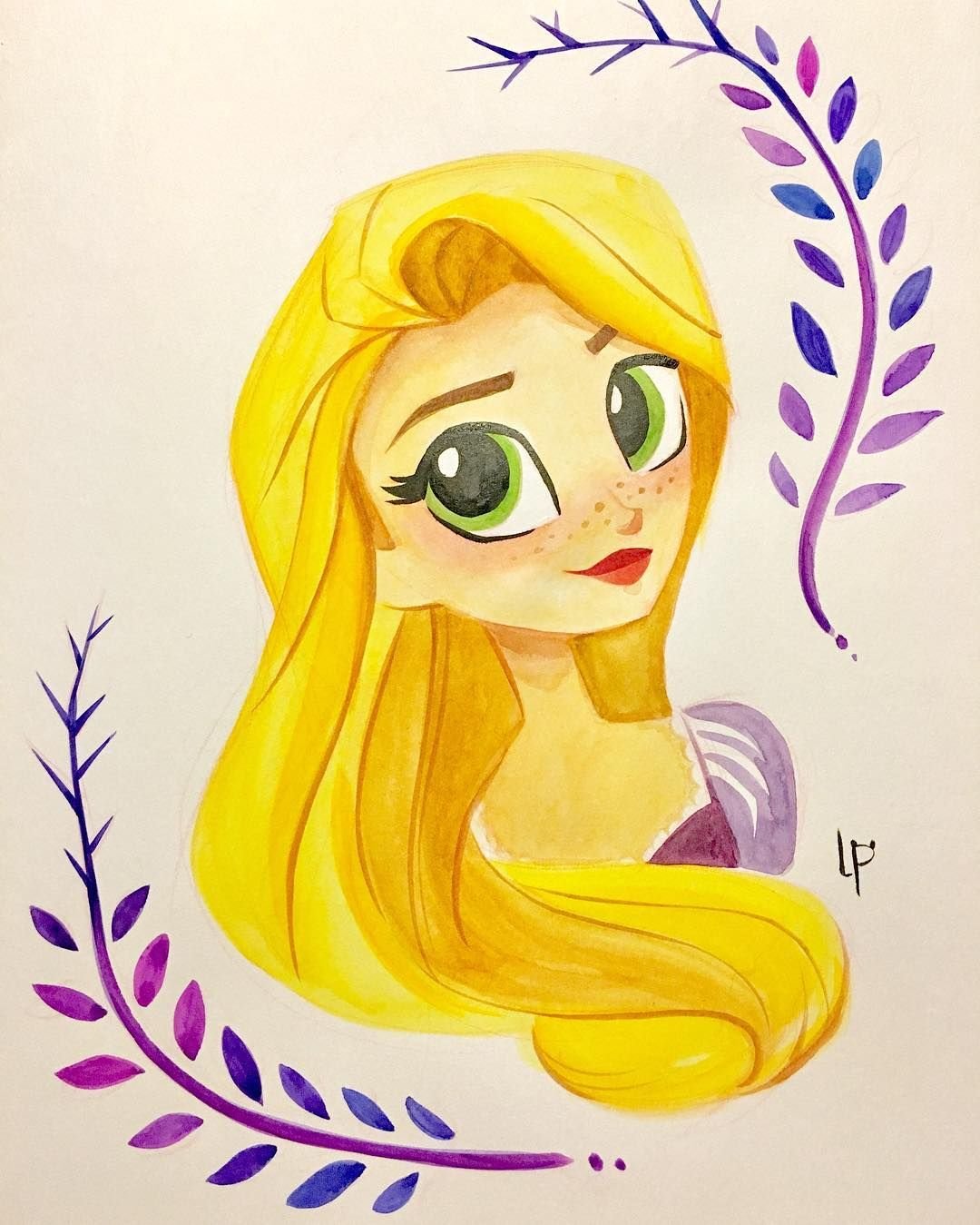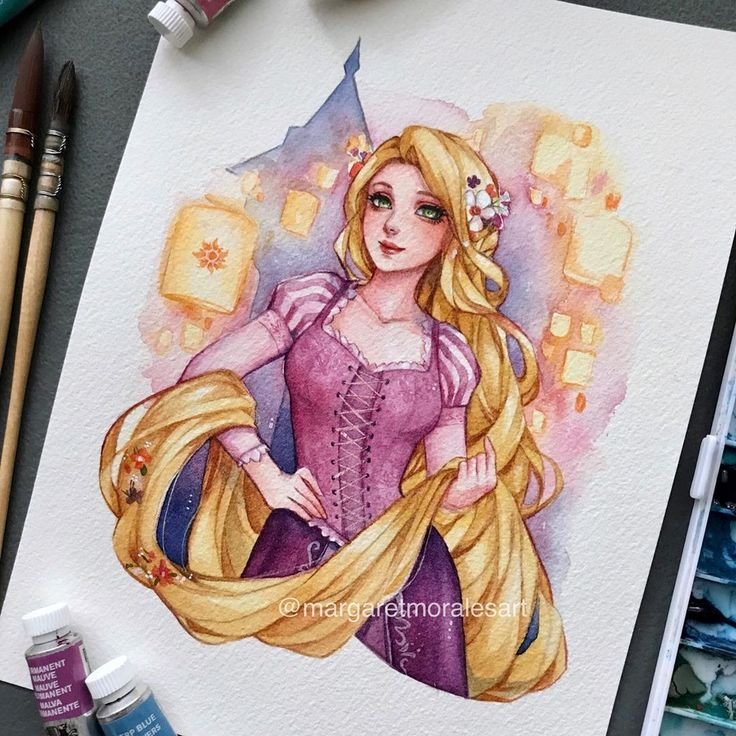 Рапунцель — это прекрасная история о девушке с длинными золотистыми волосами, которая жила в башне и была заключена там злая колдуньей. Она мечтала об освобождении и приключениях во внешнем мире. Гуашью нарисованный рисунок Рапунцель позволяет передать всю ее красоту и нежность. Яркие цвета гуаши подчеркивают волосы Рапунцель, делая их почти магическими. Рисунок заставляет полюбить этого персонажа еще больше и погрузиться в его увлекательный мир.