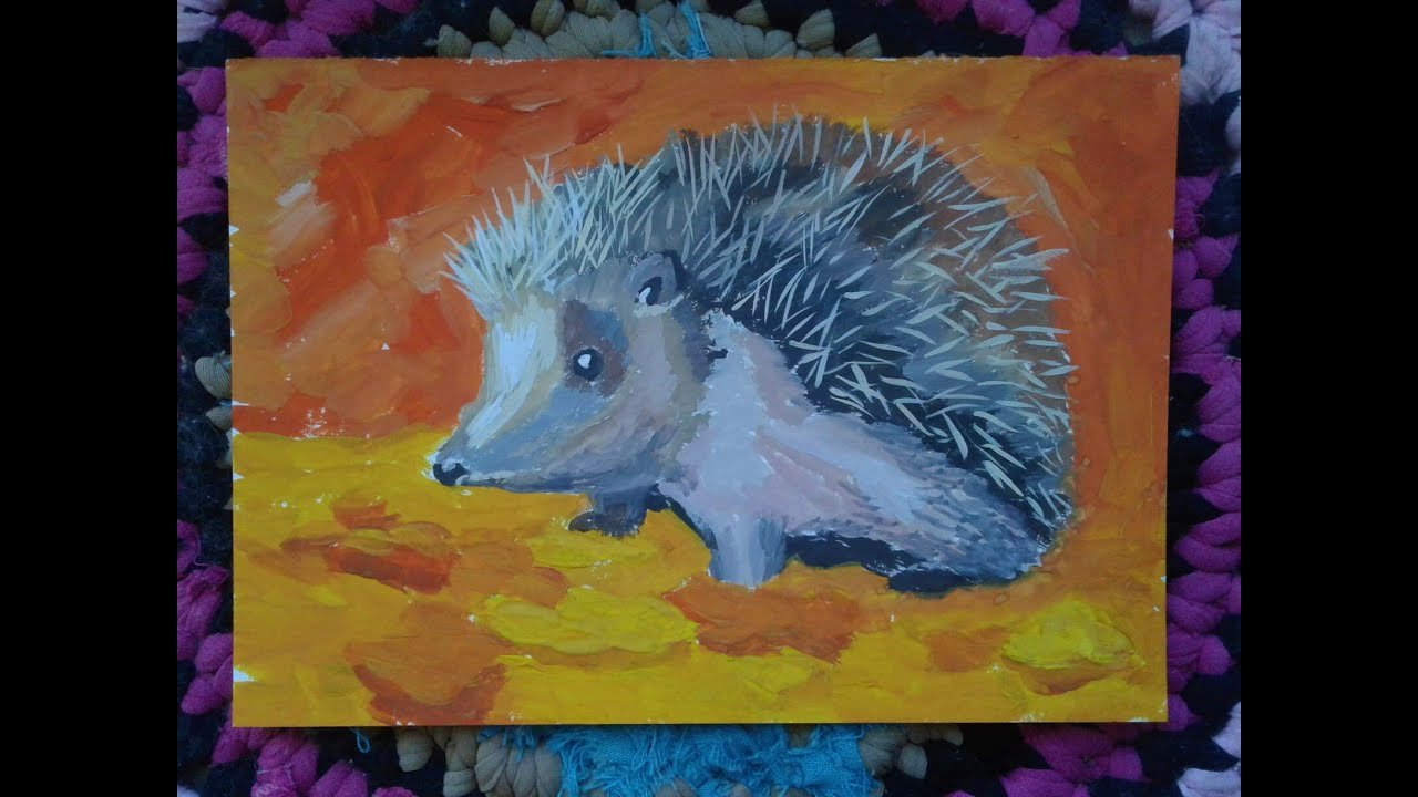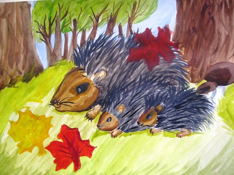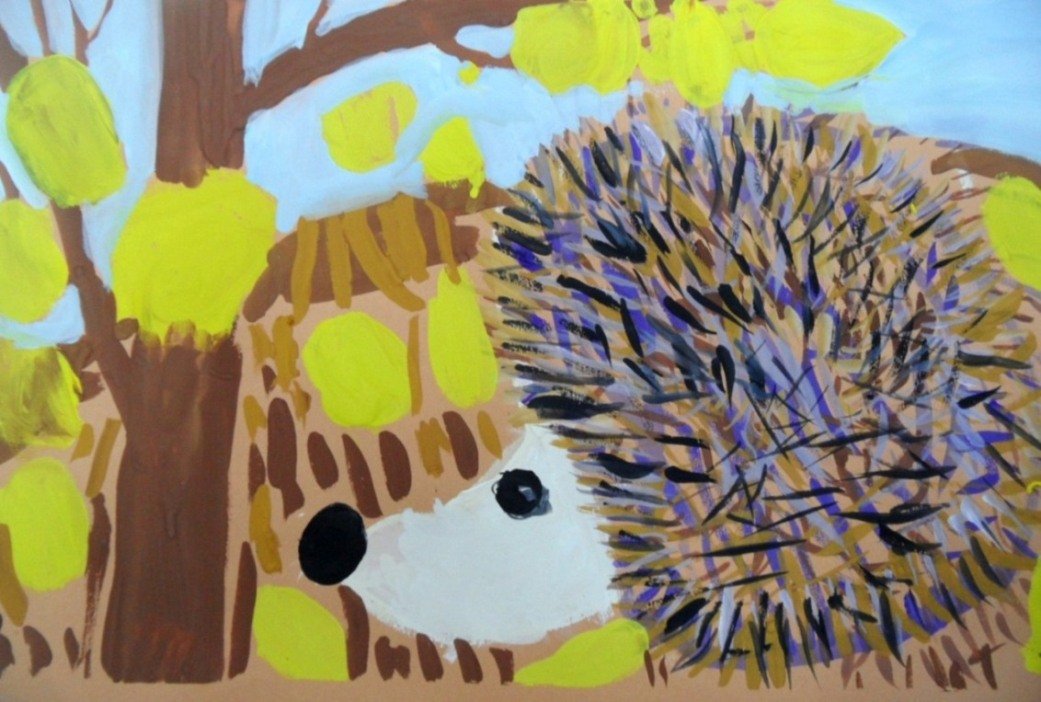![Ёжик в осеннем лесу рисунок гуашью]()