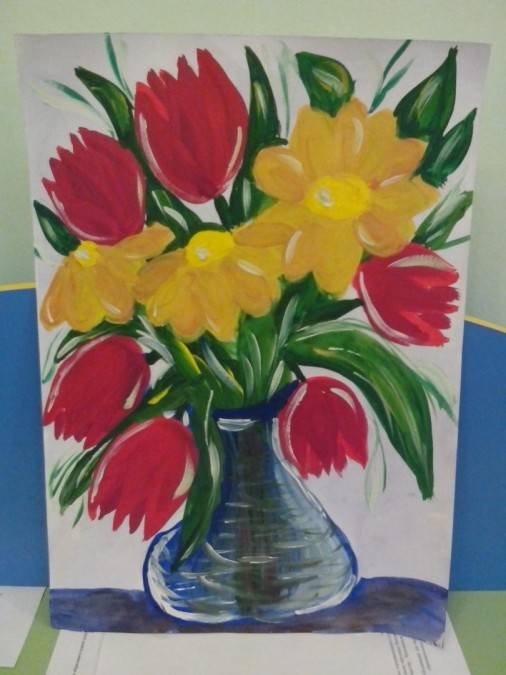 Ваза с цветами гуашью