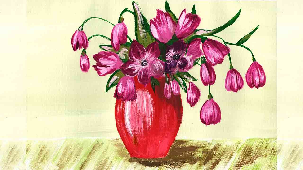 Цветы в вазе гуашью легко