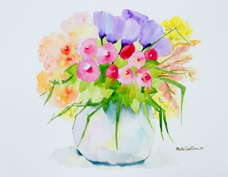 ![Ваза с цветами акварелью]()
