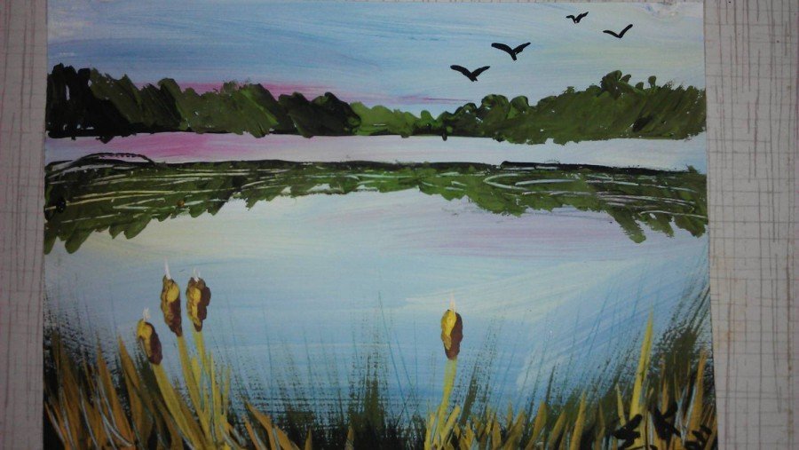 ![Пруд гуашью акварелью]()