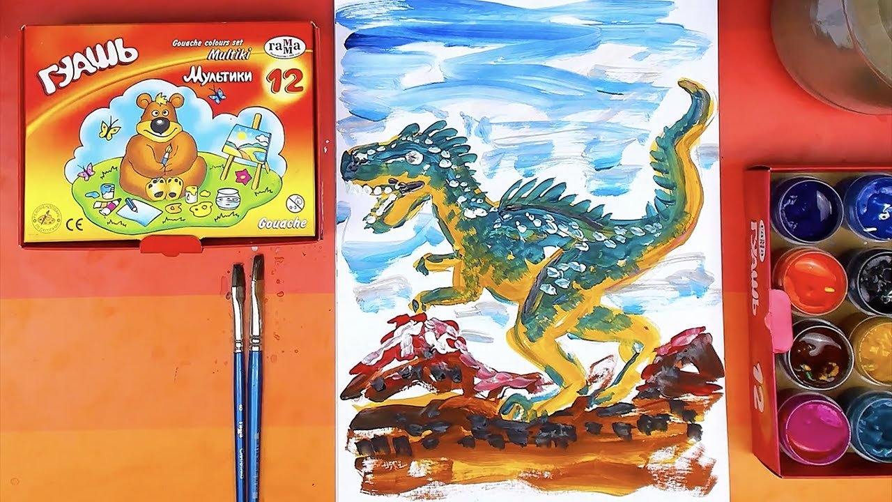 Рисование гуашью динозавр