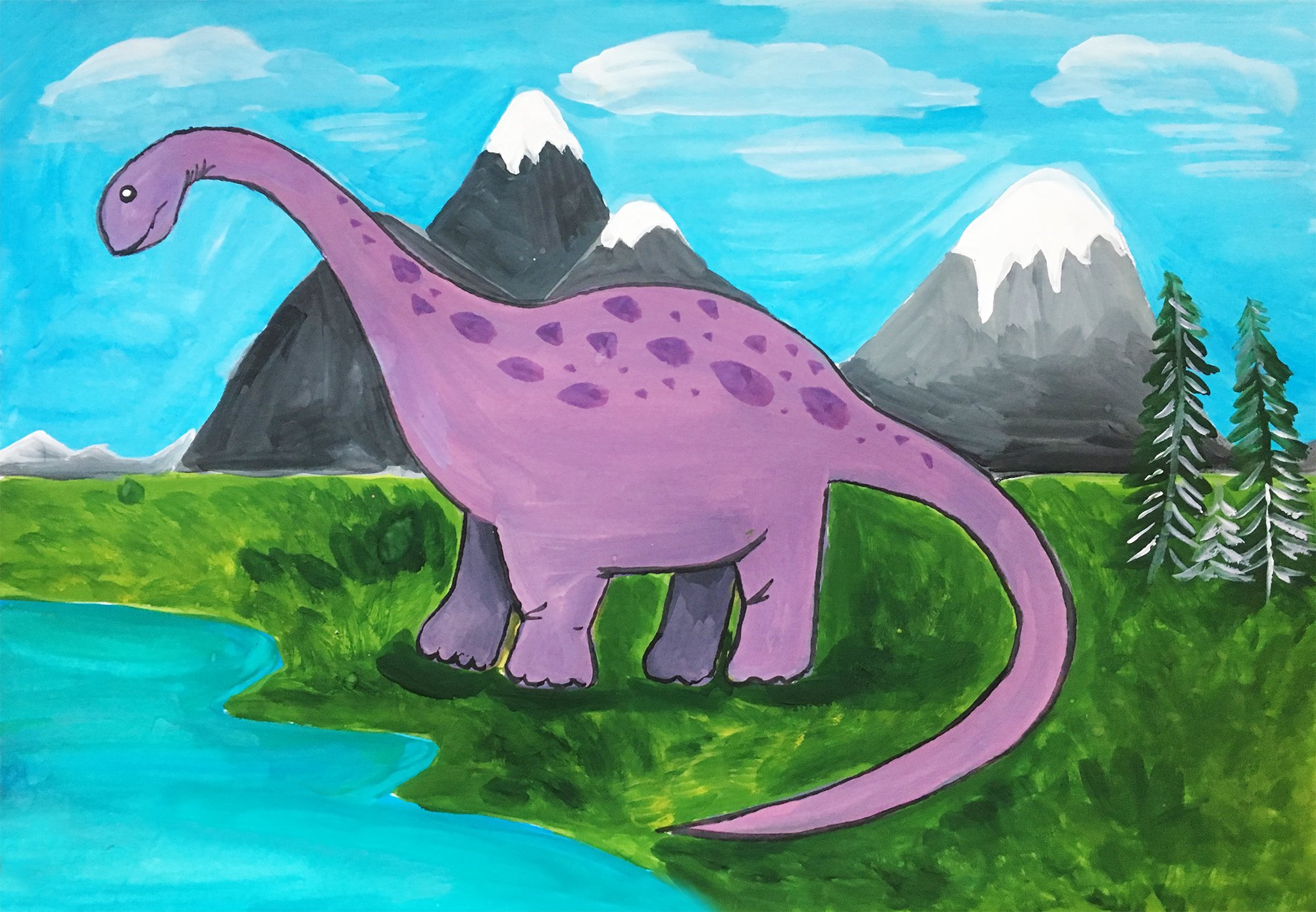 ![Динозаврик гуашью]()
