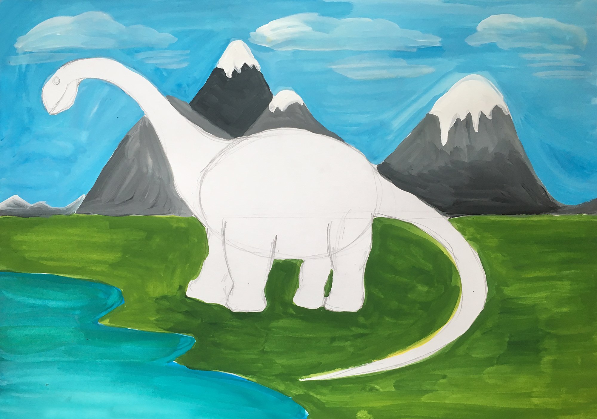 Рисуем динозавра гуашью