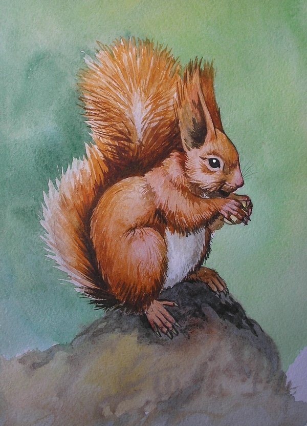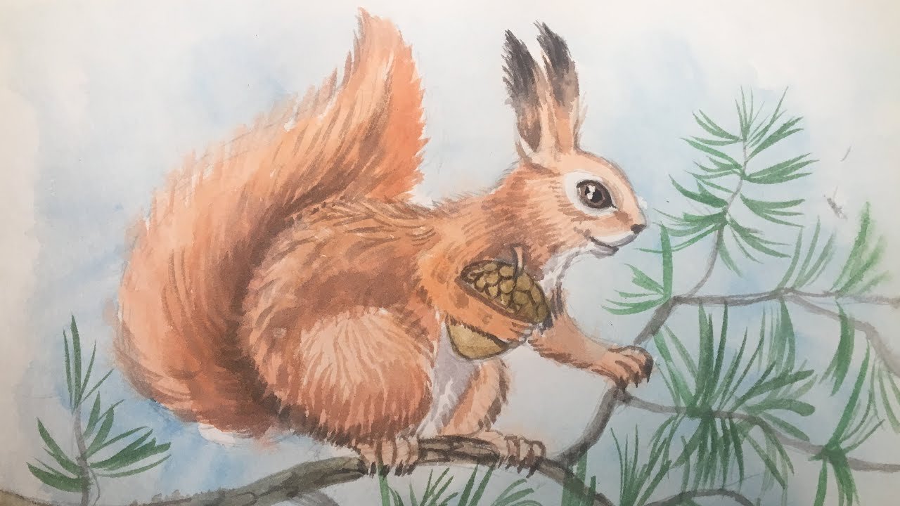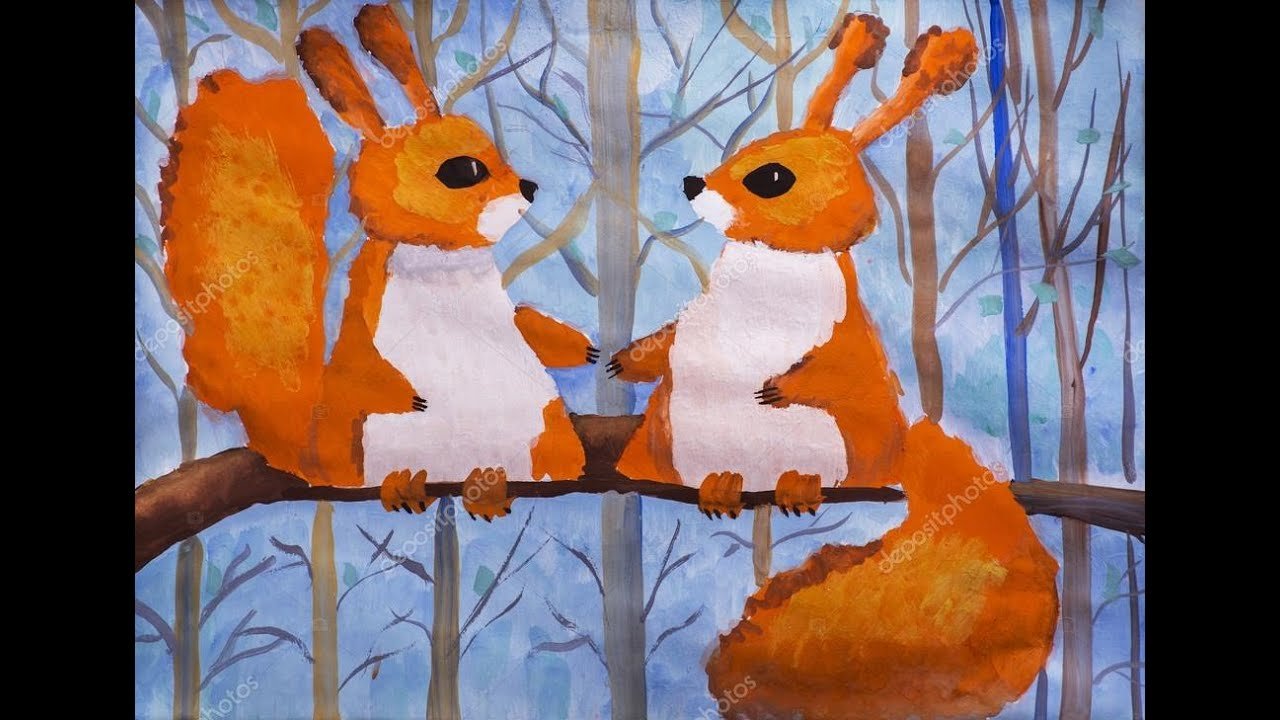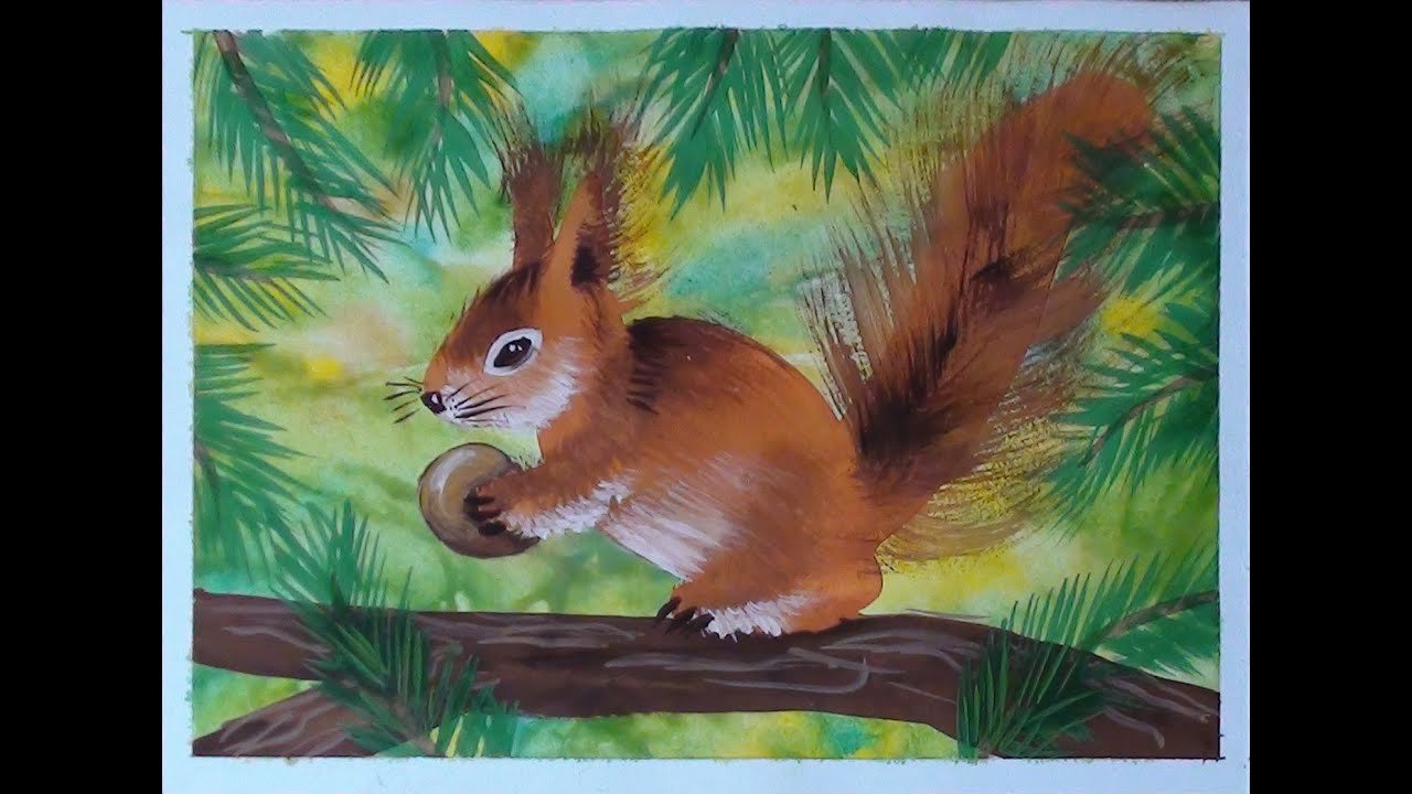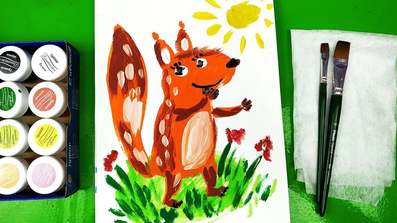 ![Рисование белка папа рисует красками РЫБАКИТ]()
