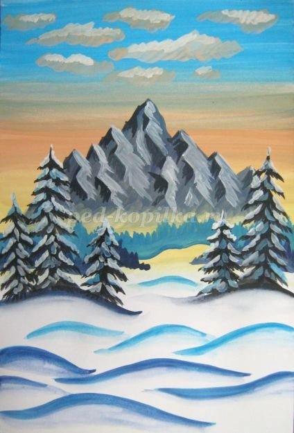 ![Заснеженные горы гуашью]()