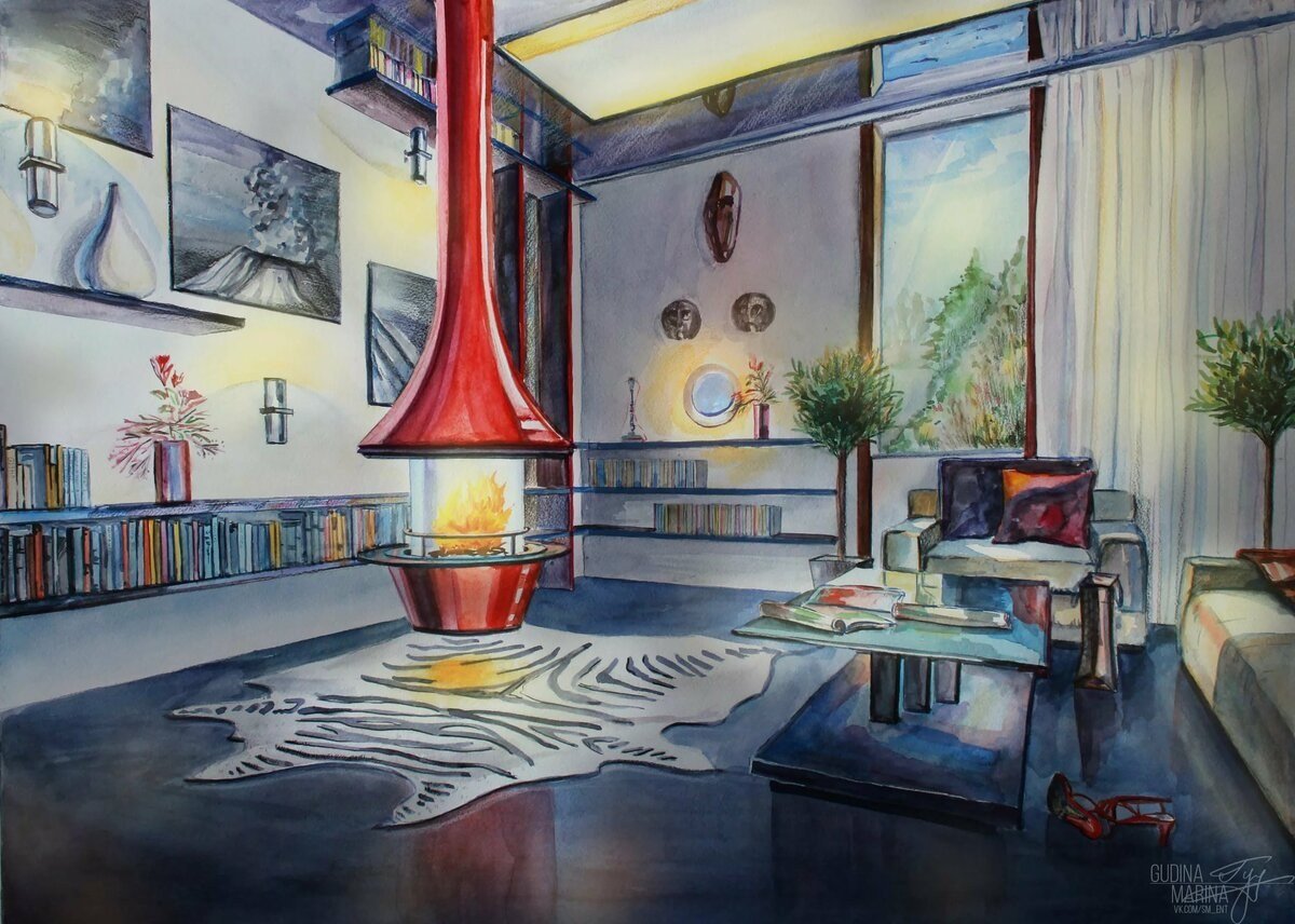 Акварель интерьер Германа Демина