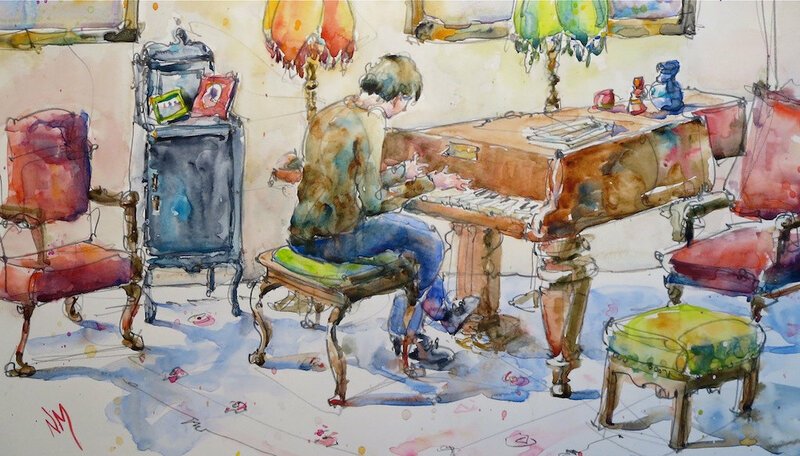 ![Интерьер акварелью]()