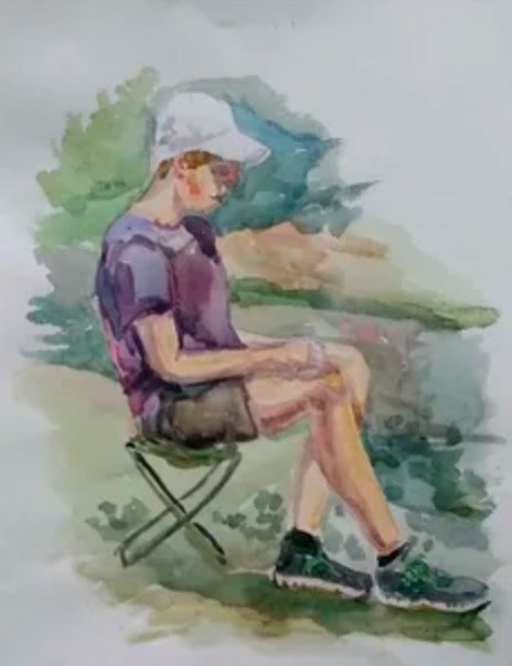 Фигура человека пленэр акварель