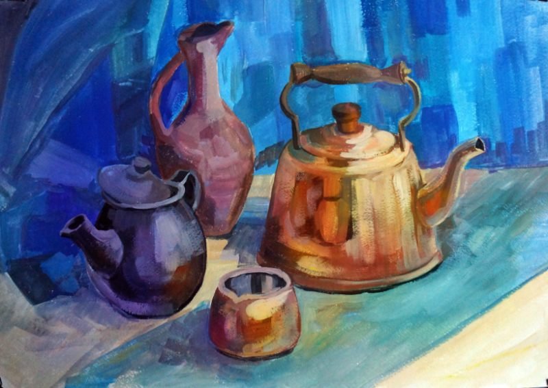 Гуашевая живопись натюрморт в холодной гамме