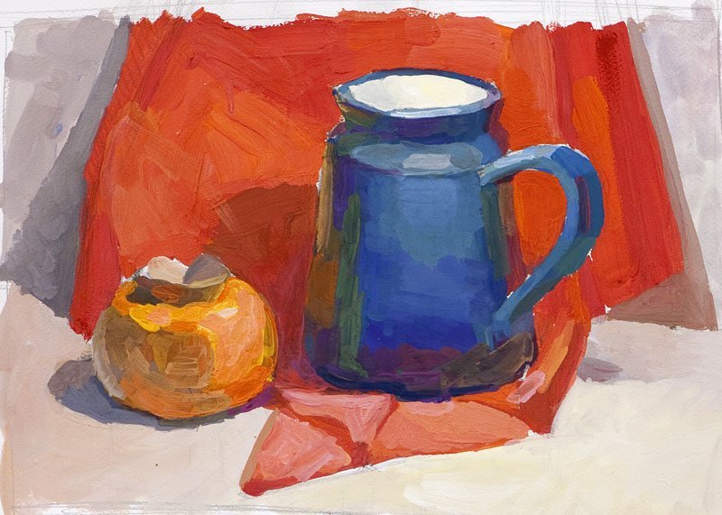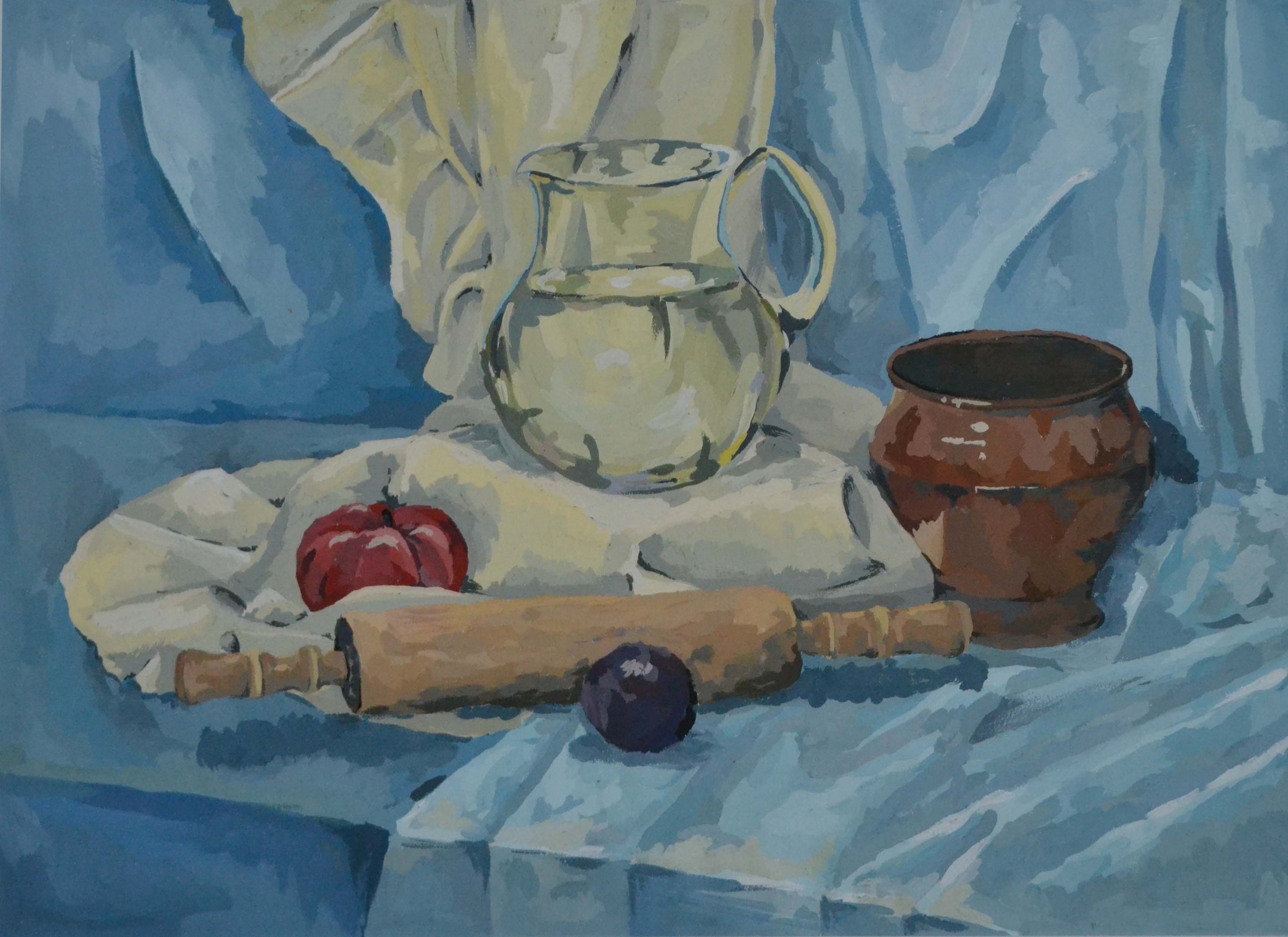 ![Гуашевая живопись натюрморт в холодной гамме]()