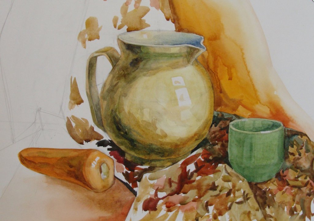 ![Натюрморт акварелью лессировка Академическая живопись]()