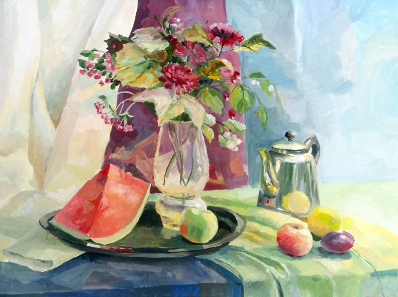Живопись натюрморт гуашью