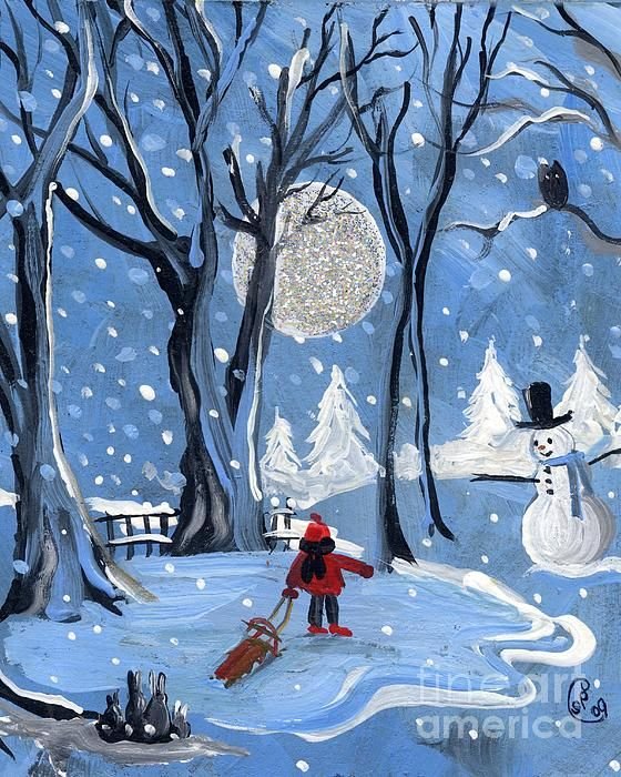 ![Техники рисования для детей зима]()