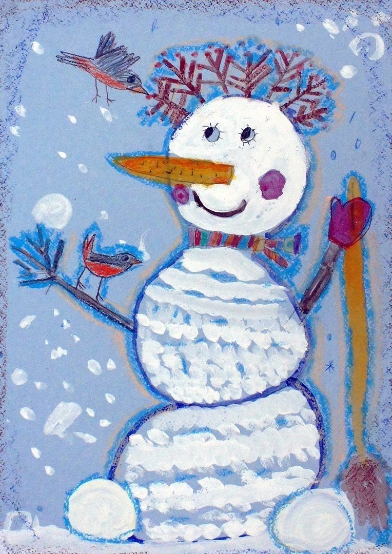 ![Снеговик рисунок гуашью]()