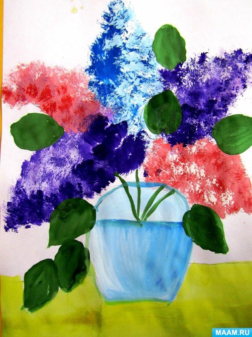 ![Сирень красками для детей]()