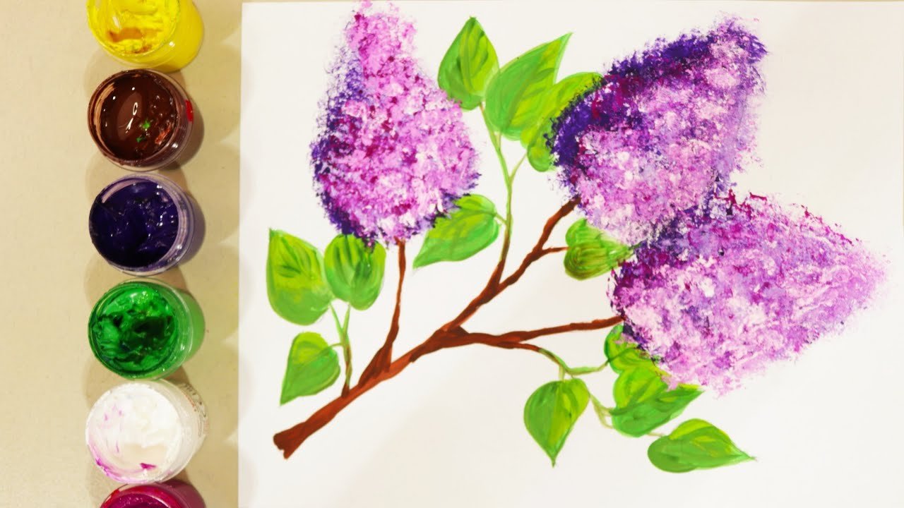 Сирень красками для начинающих пошагово