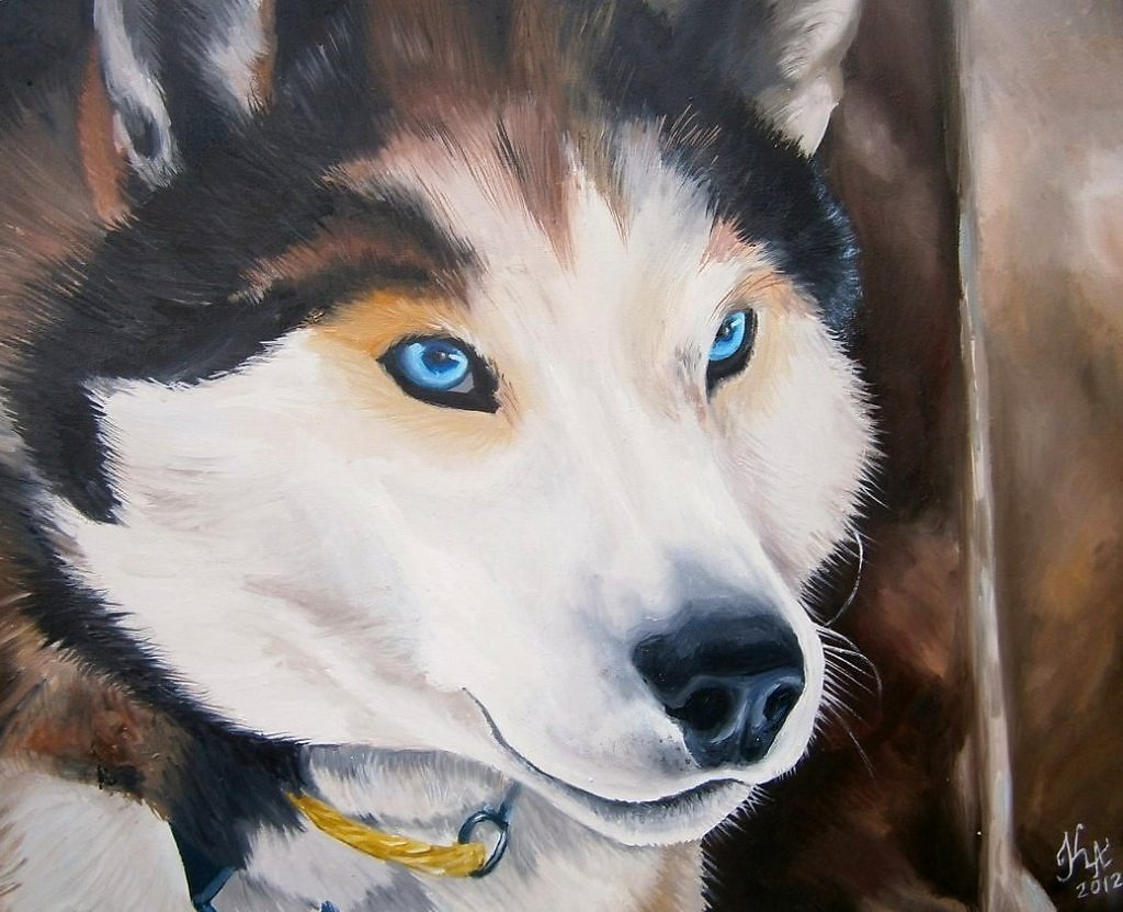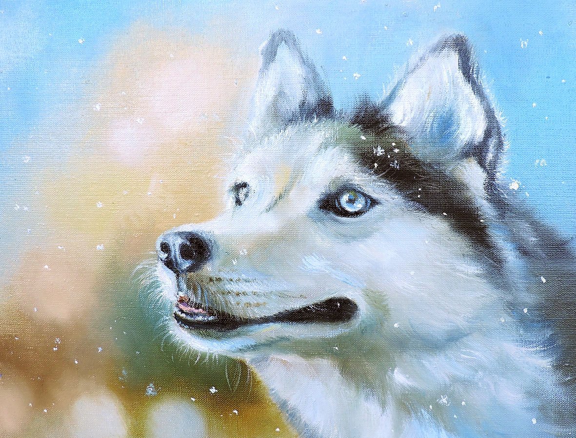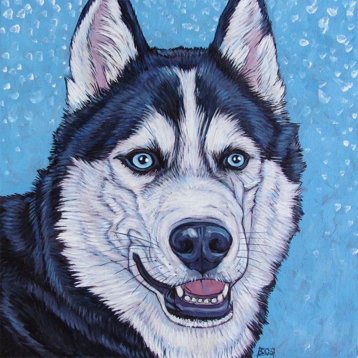 ![Хаски картина маслом]()