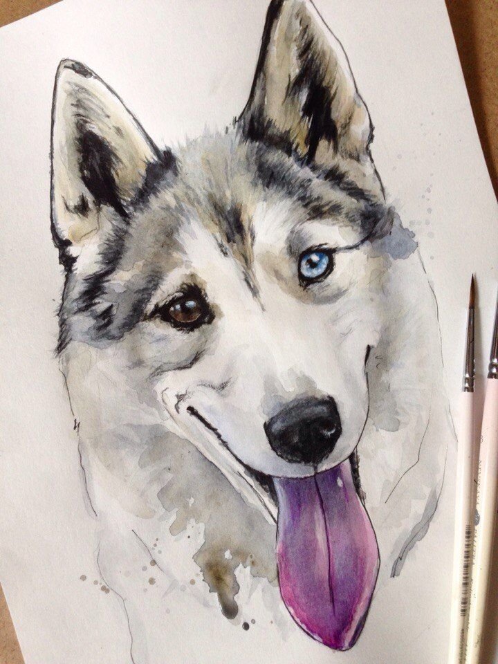 ![Лайка рисунок акварелью]()