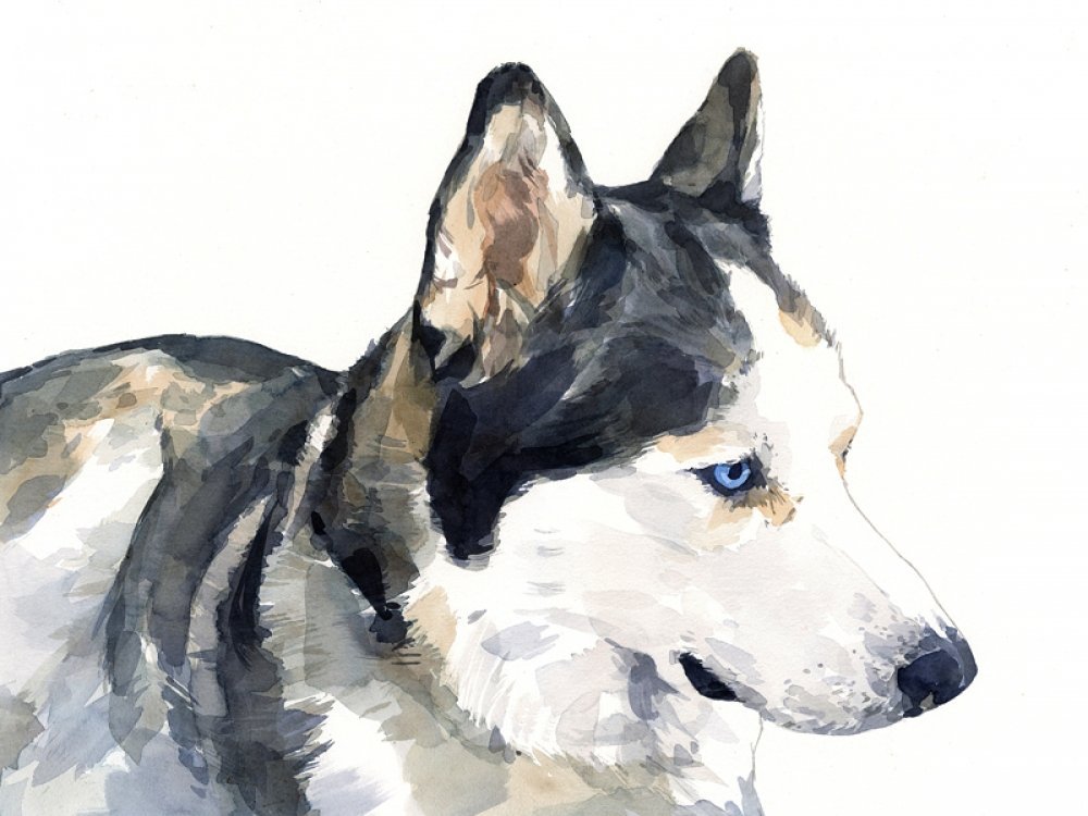![Хаски акварелью]()