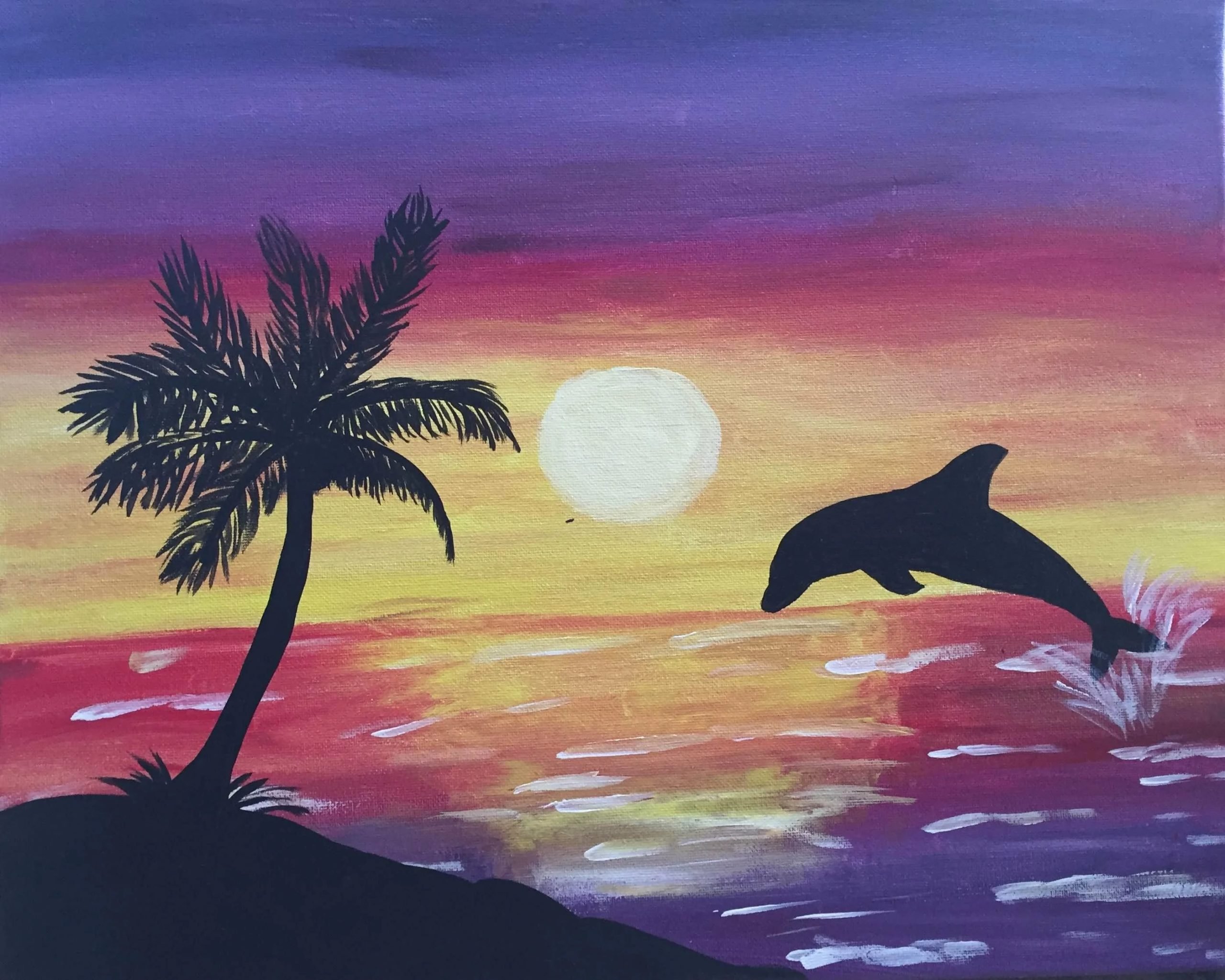 Пейзаж с дельфинами легко
