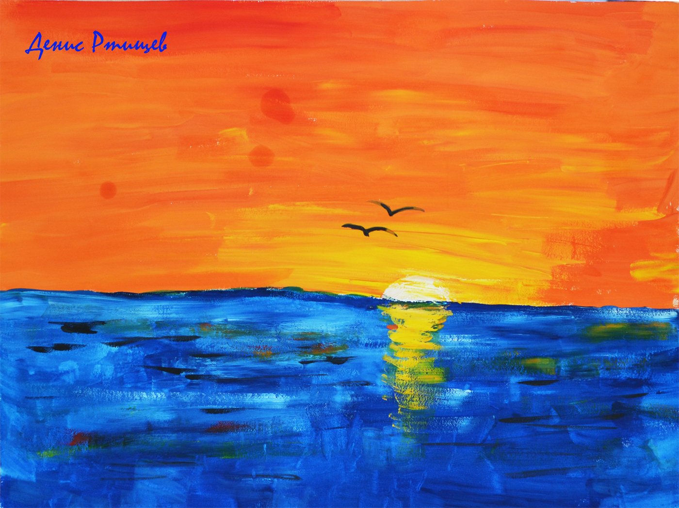 Закат гуашью