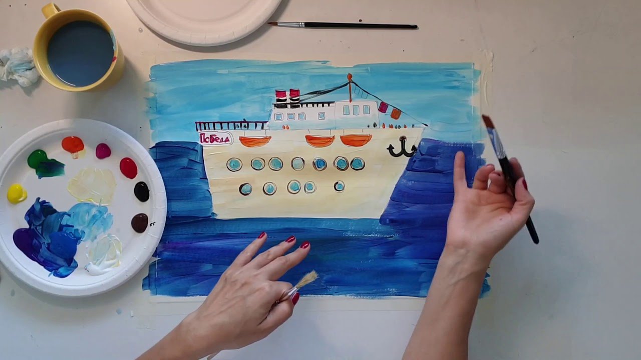 ![Мастер-класс для детей гуашью корабль]()