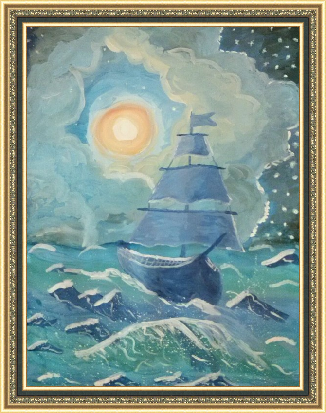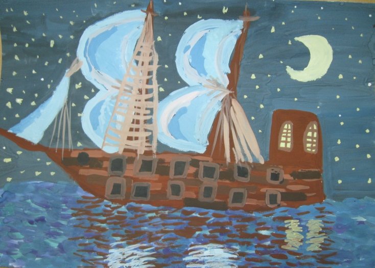 ![Корабль гуашью]()
